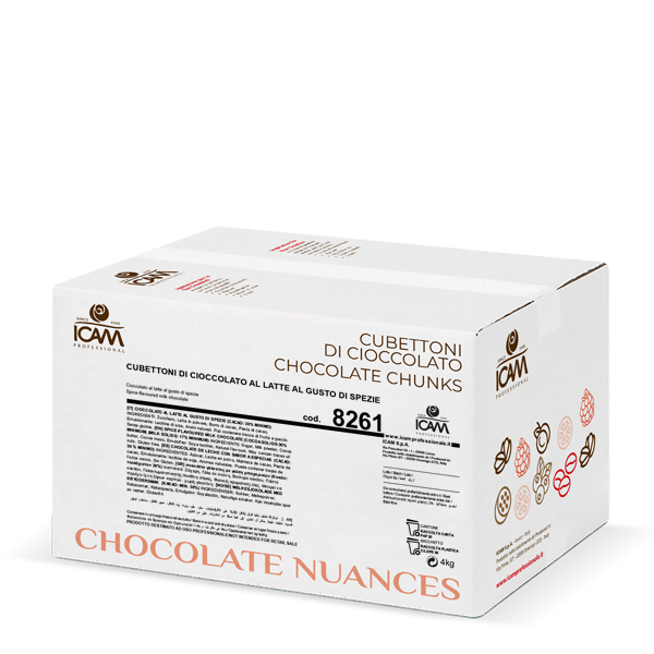 Milk chocolate chunks with intense spiced flavour, for use in baking but perfect for many other applications. Unique for shape, structure and taste.