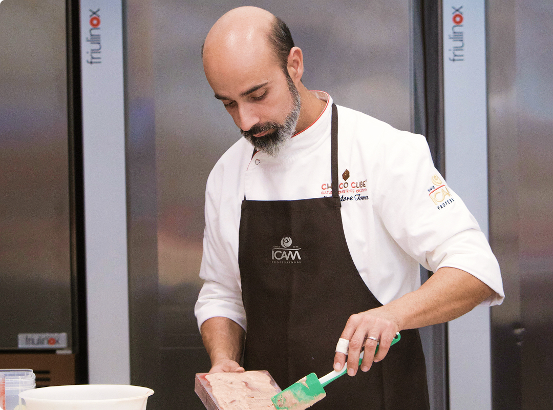 Dal 2016 Salvatore è tecnico consulente ICAM e a partire da gennaio 2019 è coordinatore didattico di CHOCO CUBE, il polo di alta formazione dedicato ai pasticceri e ai professionisti del settore; un luogo in cui passione, tradizione ed esperienza vengono messe in condivisione per favorire la crescita e lo scambio di conoscenze e rafforzare la cultura del cioccolato, fino a delineare le tendenze del settore per il futuro.