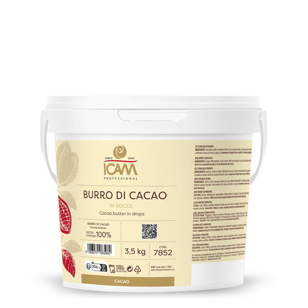 Burro di cacao di prima pressione , ottenuto dalla spremitura di cacao di ottima qualità e successivamente deodorizzato.