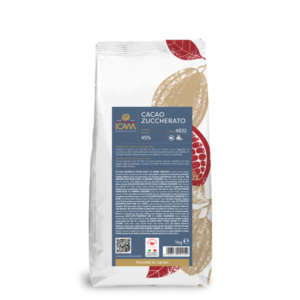 Polvere di cacao fortemente alcalinizzata (pH 8), con 22/24% di burro di cacao e colore rosso bruno molto scuro.